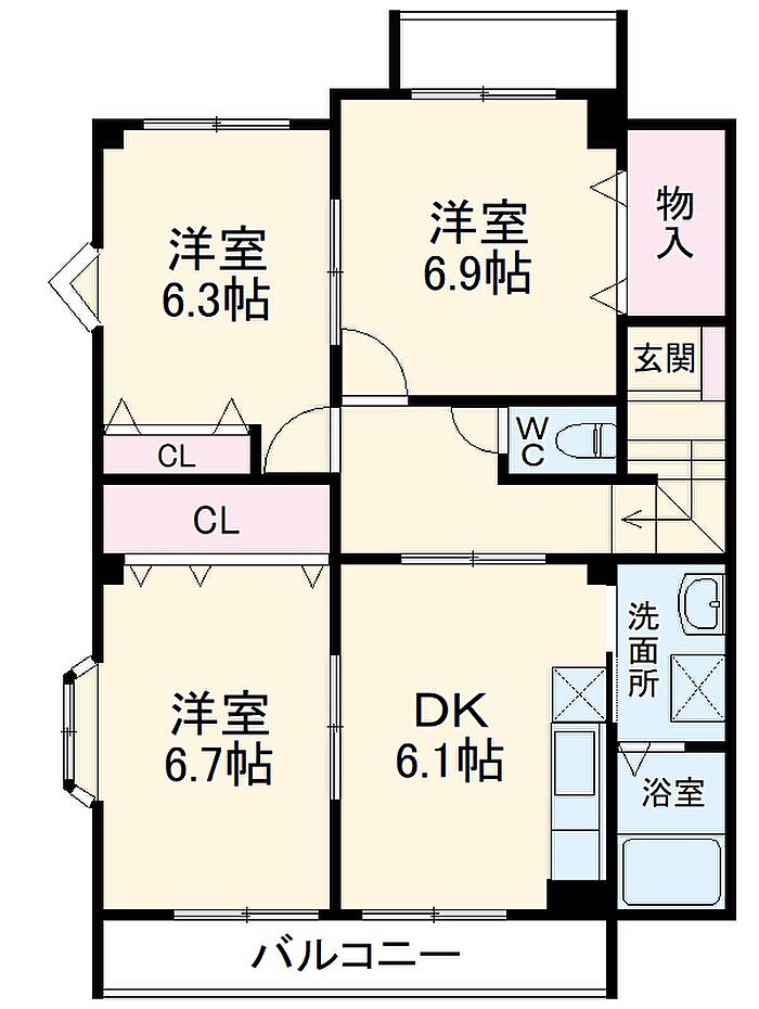新城市平井字西原 マンション 3DK/2階