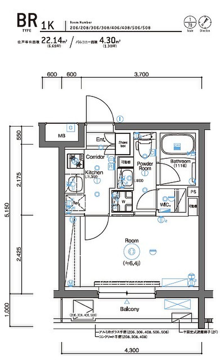 横浜市神奈川区新町 マンション 1K/4階