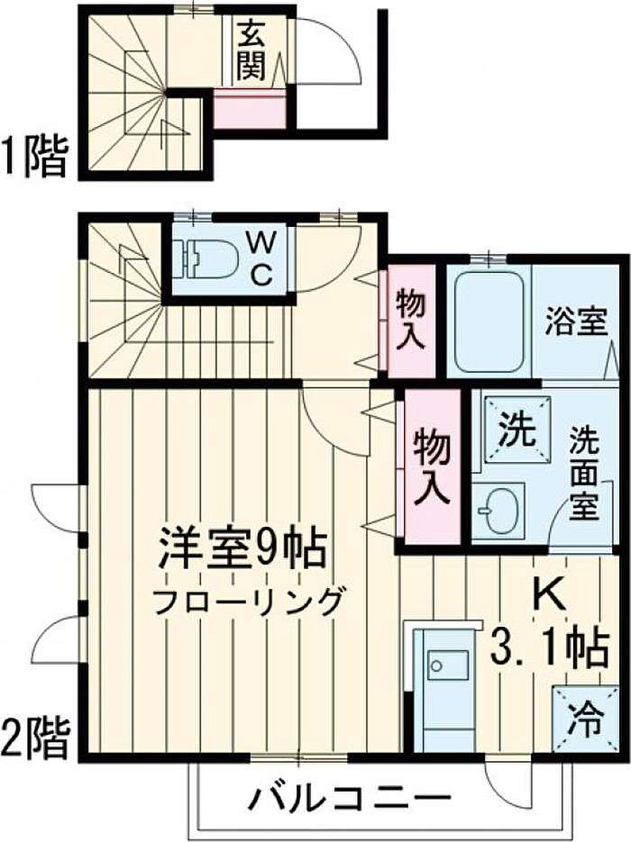 カーサ・ローザ A 1K/2階