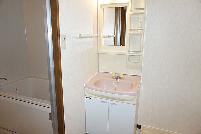 洗面化粧台が付いているので、歯ブラシやドライヤーなどをまとめてスッキリ収納できます。
