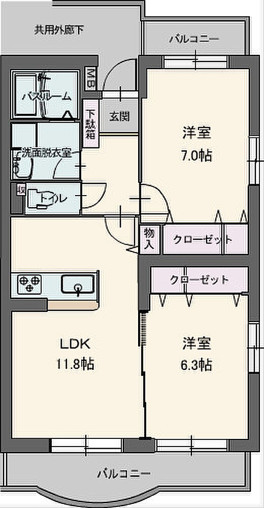 リビングダイニングキッチン 11.8帖)