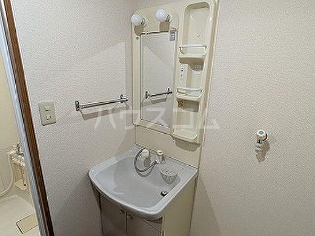 化粧品や洗面道具といった小物をまとめてスッキリ収納できる洗面化粧台があります。CATV対応物件です。