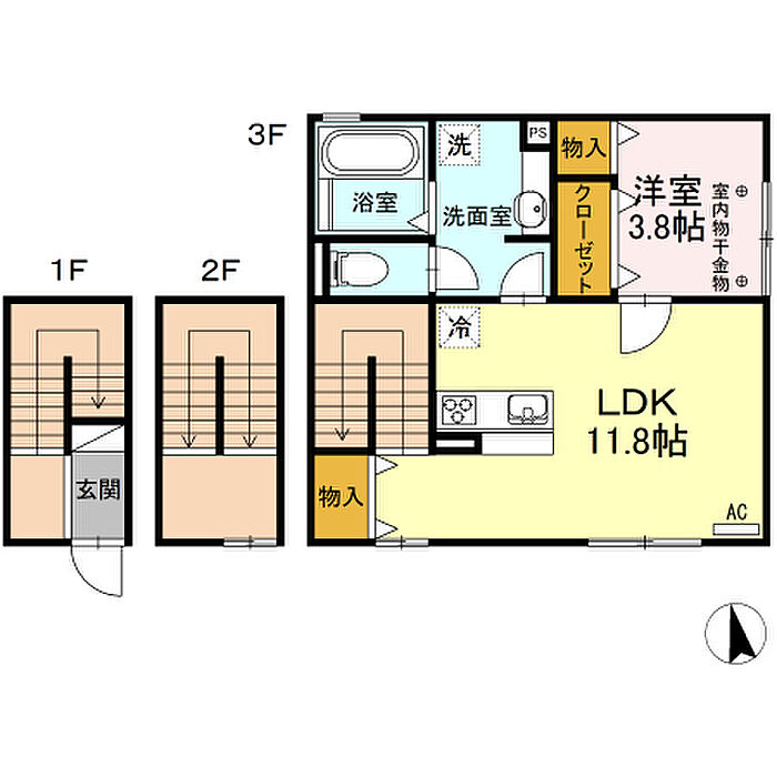 洋室 3.8帖(3階))