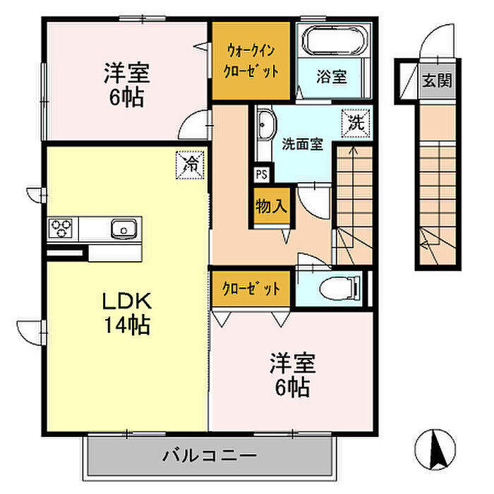日野市落川 アパート 2LDK/2階