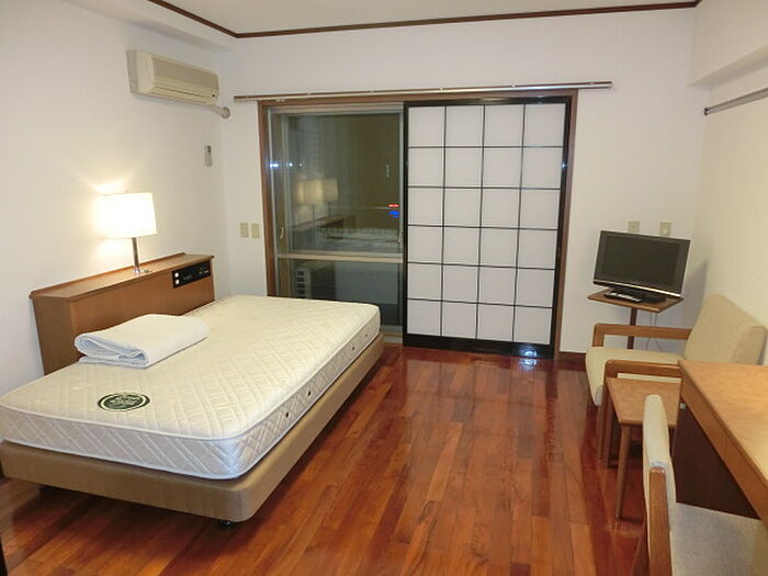 家具、家電付(液晶テレビ・電子レンジ・冷蔵庫・洗濯機・乾燥機・ホテル仕様ベッド・ライティングデスク・アームチェア・テーブル)