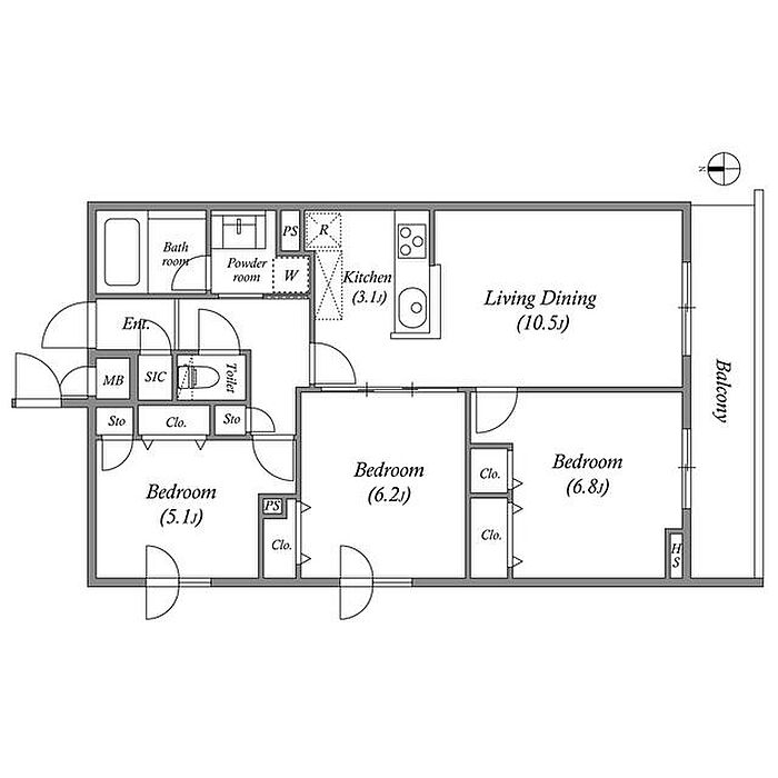 - コンロ三口