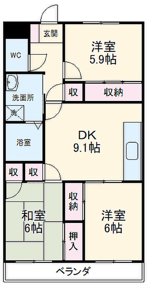 ヤマキンマンション 203 3DK/2階