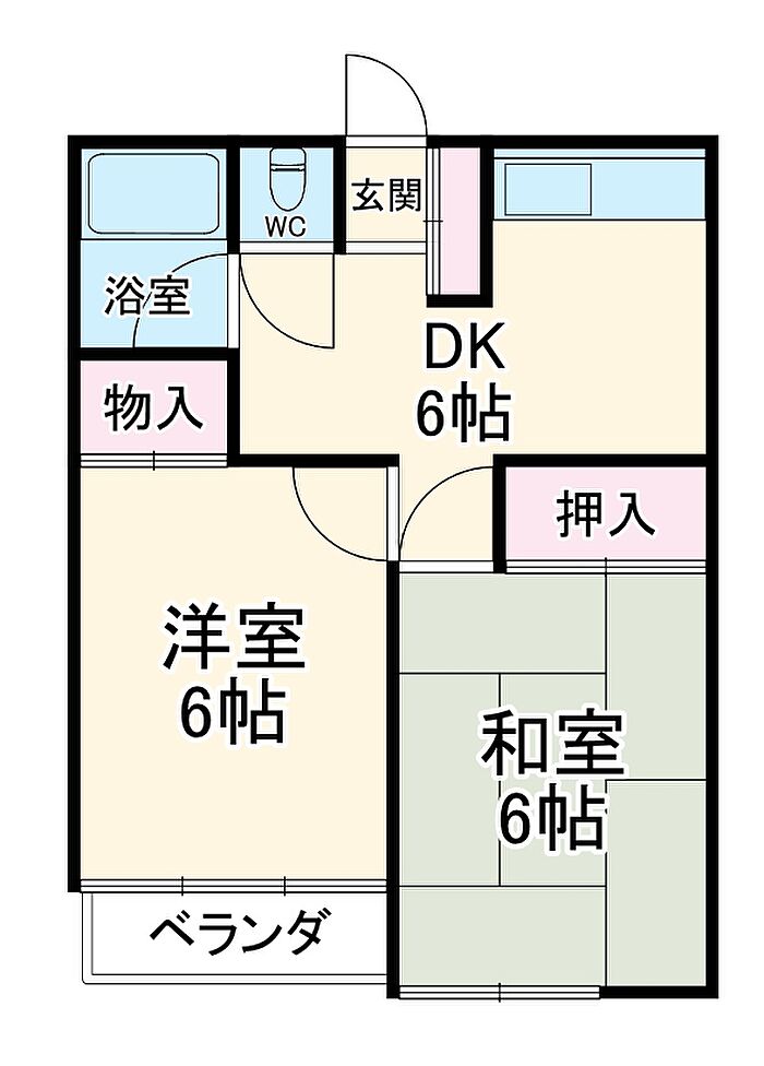 室内設備は照明付き・CATVなど充実した設備を備え付けています。こちらは2DKの物件です。