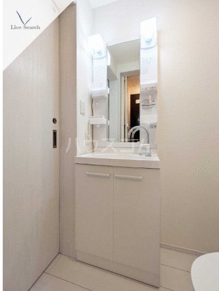 身支度に必要となる様々なアイテムを収納可能なスペースがある独立洗面台を備えております。