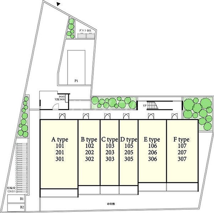 清潔な敷地内ごみ置き場のあるアパート。ネット使用料が無料のアパートです。