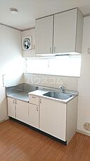 二口コンロが付いている物件です。上着やズボンなども折り畳まずに収納できるクロゼットのある物件です。