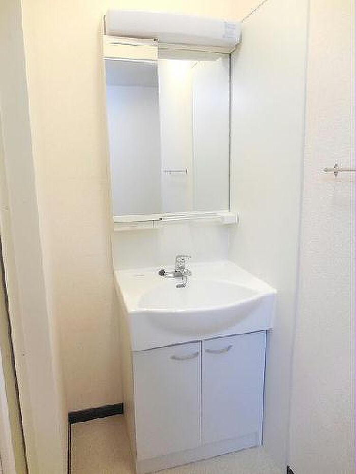 忙しい朝でも鏡を見ながらサッと身支度を整えられる独立洗面台を備えております。