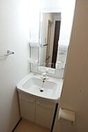 化粧品や洗面道具といった小物をまとめて収納できる独立洗面台があります。