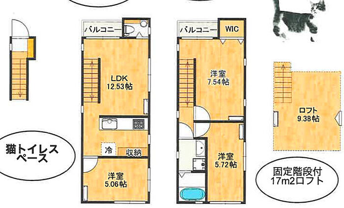 猫1匹敷金1ケ月(退去時1ヶ月分償却)猫2匹敷金2ケ月(退去時2ヶ月分償却) ペット無しの場合は敷金無し
