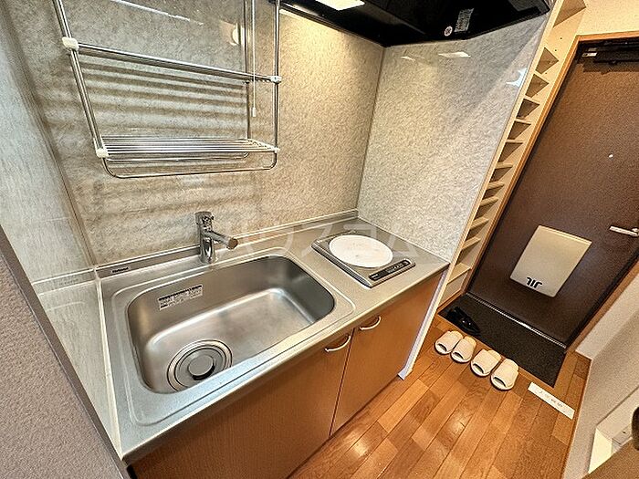 モニターから顔が見えるTVインターホン付きです。一口コンロが付いたアパートです。