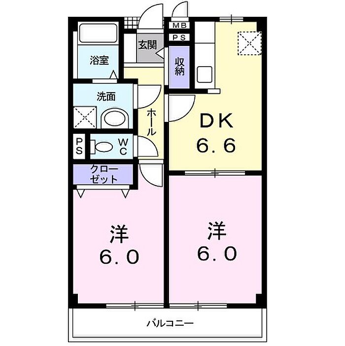 ルミエールB 202 2DK/2階