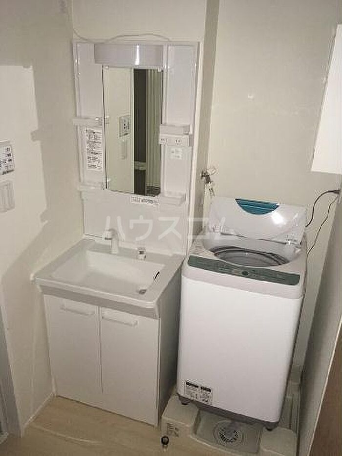 独立洗面台を備え付けているので、洗面台前で身支度をサッと整えることができます。