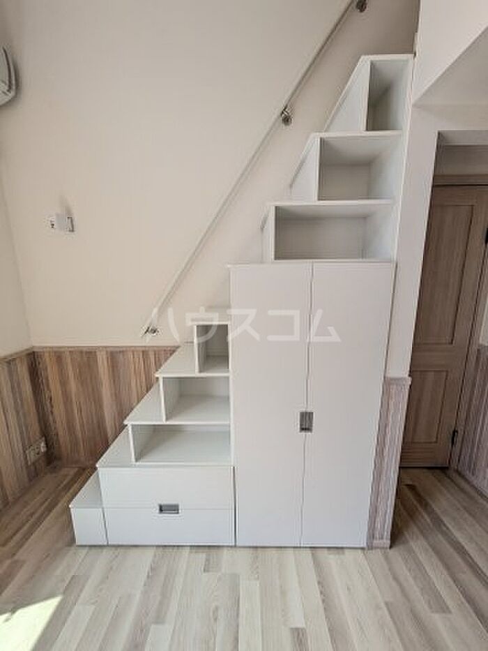 女性専用 10平米を超えるロフトが付いており、天井高も高いため、実際の面積よりもかなり広々と使っていただけます。ロフトへの昇降も、はしごではなく収納付階段を用意しましたので、楽にご利用いただけます。