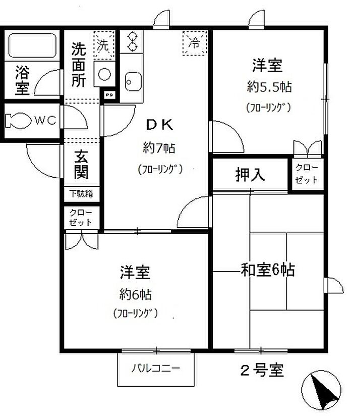 ミルキーウェイ 202 3DK/2階