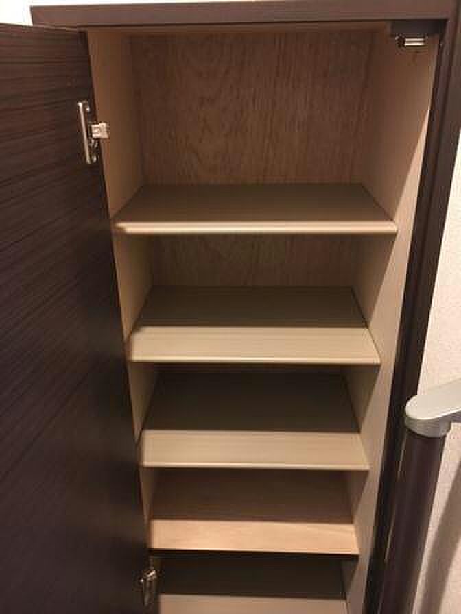 化粧品やスタイリング剤などをまとめて出し入れして、サッと身支度を整えられる独立洗面台があります。