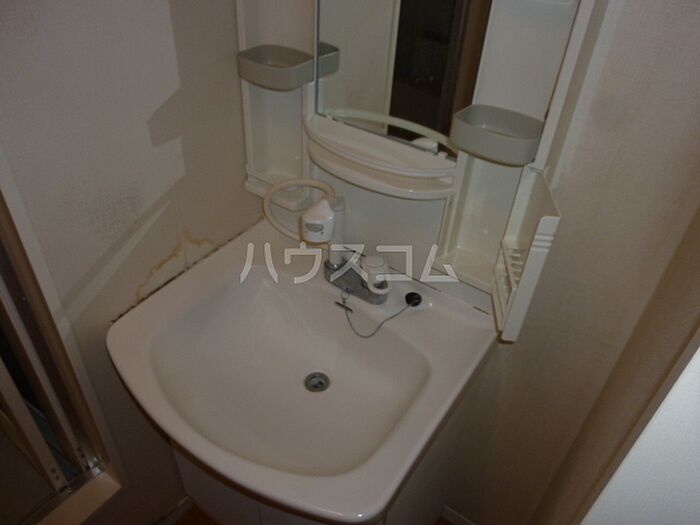 化粧品や洗面道具といった小物をまとめて収納できる独立洗面台が付いております。