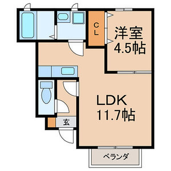 アスピリアフルール 1LDK/1階
