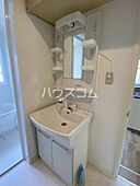 化粧品や洗面道具といった小物をまとめて収納できる独立洗面台があります。