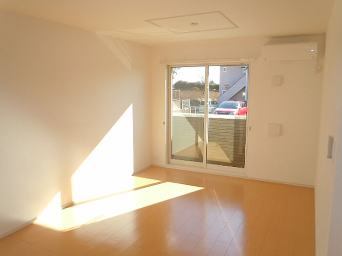 この物件はバルコニー付きでおすすめです。フローリングには静電気の防止効果もあるので好評です。