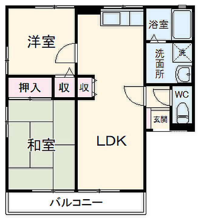 バルコニーをご活用いただけます。2LDKのお住まいです。このアパートは駐輪場付きの物件です。