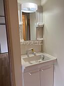 化粧をするスペースのある洗面化粧台付きの物件です。