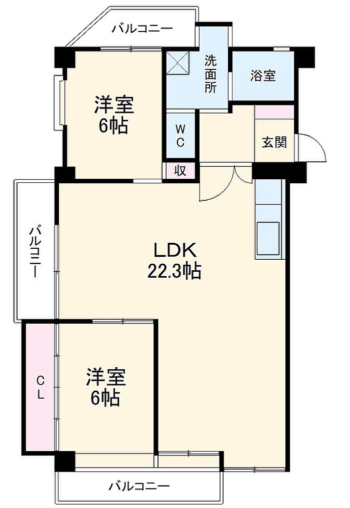 パレス鹿子殿 301 2LDK/3階