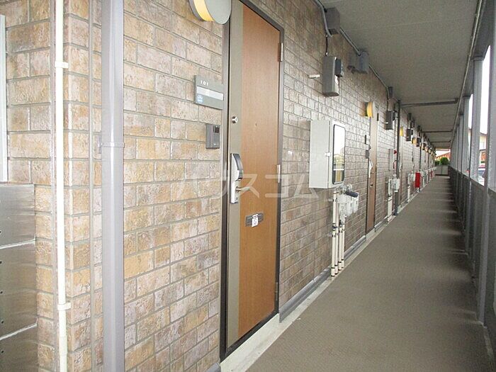 TVインターホンで、モニターから来訪者が確認できます。こちらのアパートは閑静な住宅地にあります。