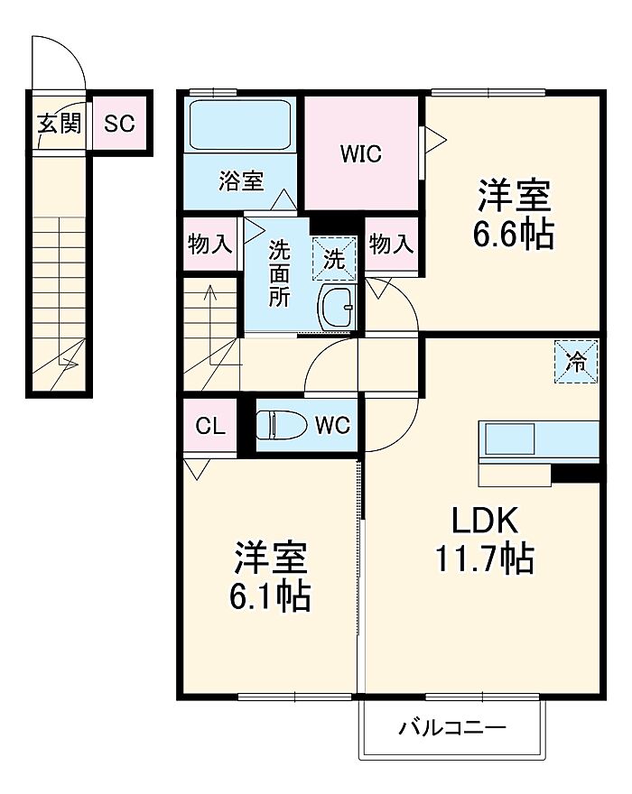 ハーリンガムコート都賀 D 2LDK/2階