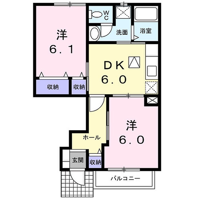 ヴァイオレットB 103 2DK/1階
