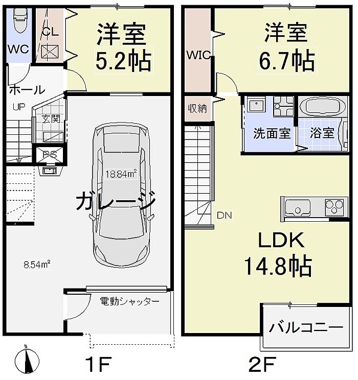 ガレージ1台平面並列2台計3台付き