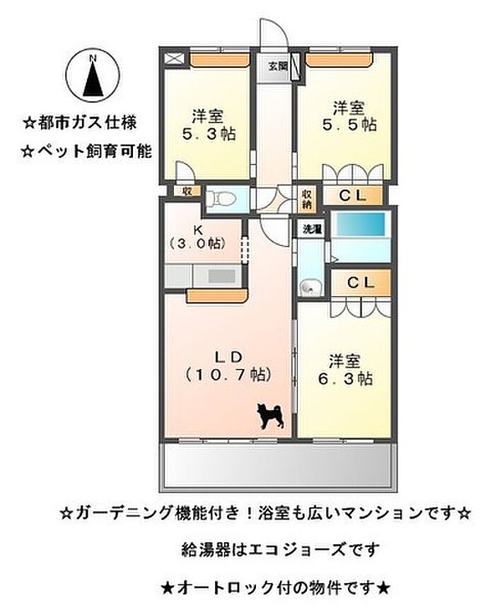 ペット飼育時敷金1か月追加(小型犬1匹まで)