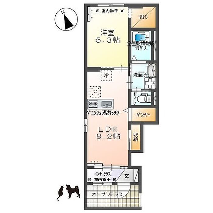 インターネット使用料無料、ペット飼育相談可能なお部屋です