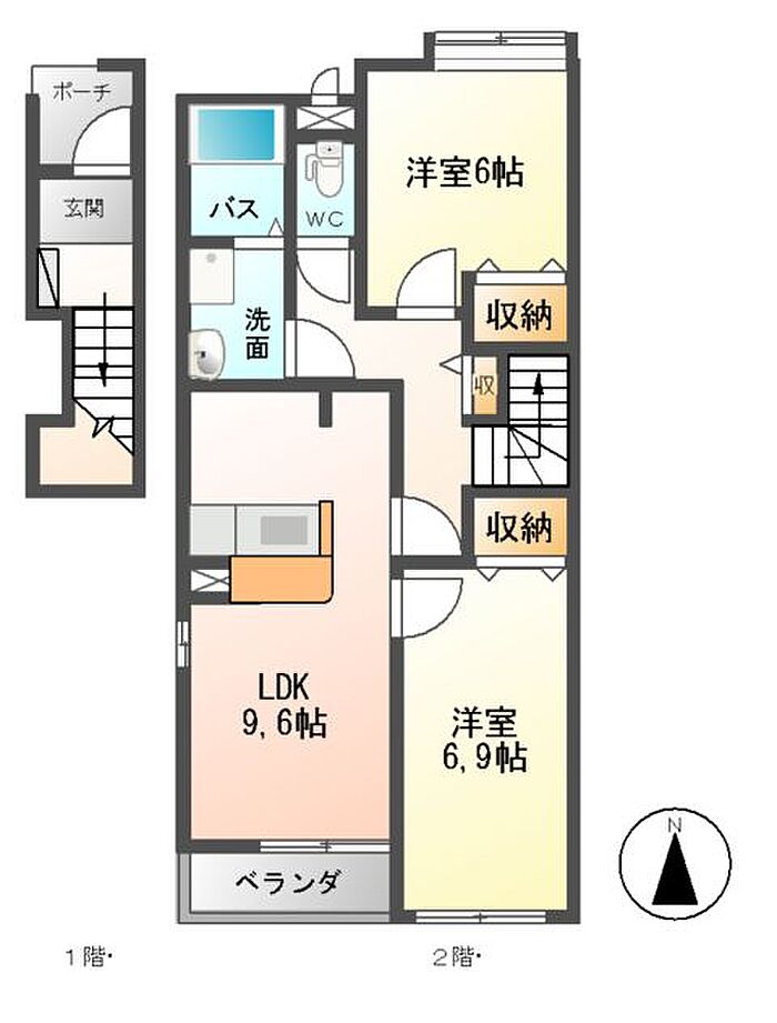 グローリーII A棟 2DK/2階