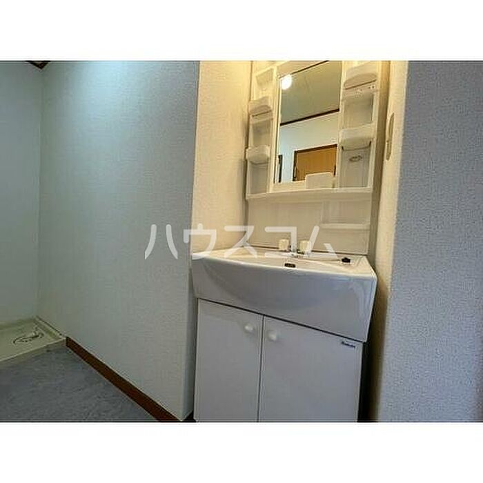 収納スペースが大きいため、生活感のでやすい小物類もすっきりと隠して収納できる洗面化粧台があります。