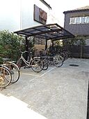 共用部にはエレベータ・敷地内ごみ置き場などが揃っております。居住者用の駐輪場が付いている物件です。