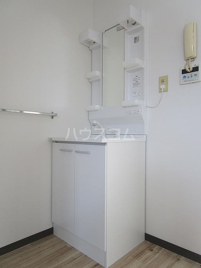 化粧品やスタイリング剤などをまとめて出して、サッと身支度を整えられる洗面化粧台を採用しています。