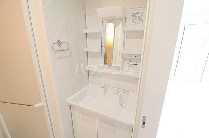 化粧品や洗面道具といった小物をまとめて収納できる独立洗面台があります。駐輪場付きの物件です。