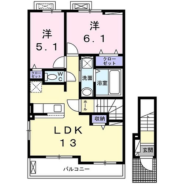 柏市小青田4丁目 アパート 2LDK/2階