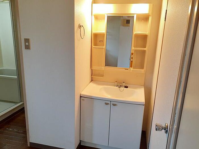 化粧品や洗面道具といった小物もスッキリまとめて収納できる独立洗面台が付いております。