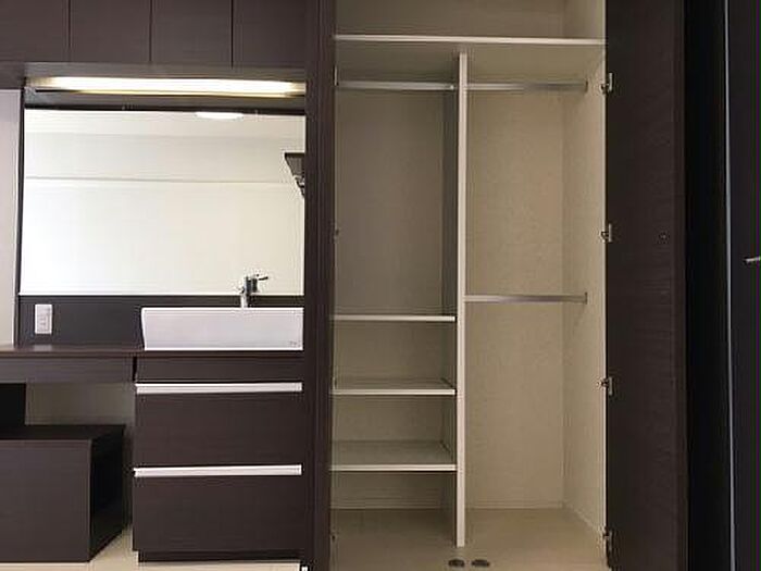 忙しい朝でも鏡を見ながらサッと身支度を整えられる洗面化粧台があります。駐輪場付きの物件です。