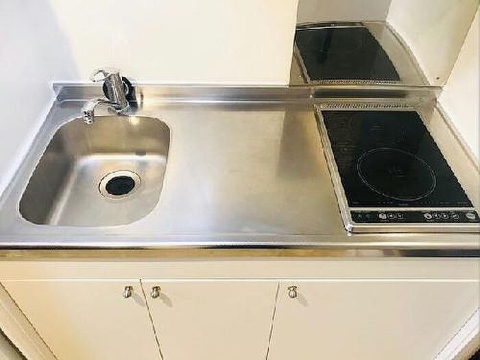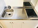こちらは洗面所が独立している物件です。電気コンロをご利用いただける物件です。