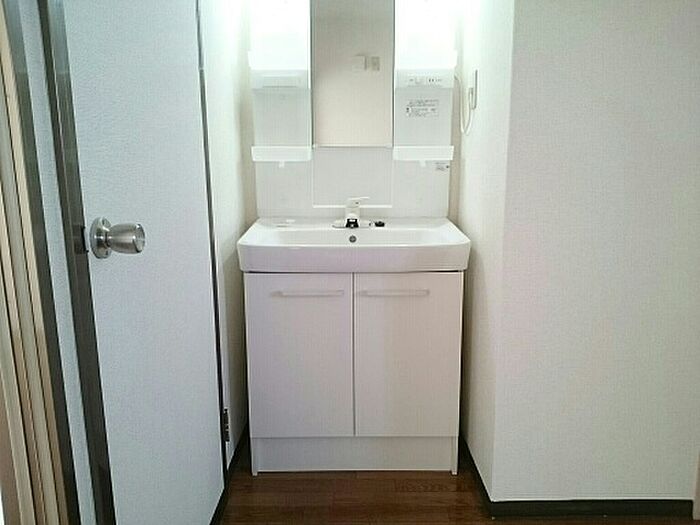 化粧品やスタイリング剤などをまとめて出して、サッと身支度を整えられる洗面化粧台があります。