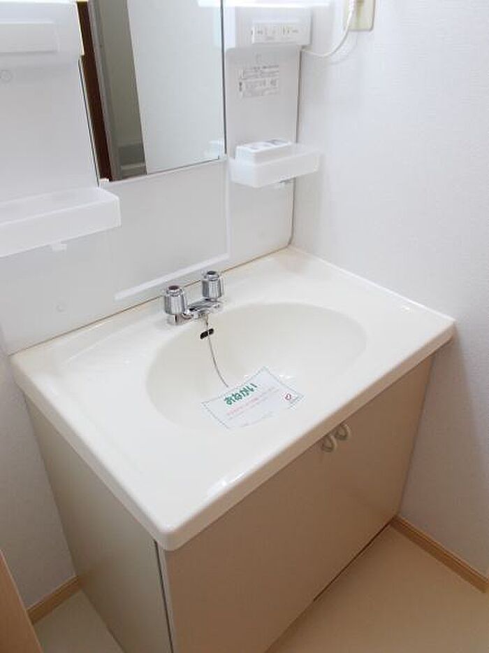 化粧品や洗面道具といった小物をまとめてスッキリ収納できる洗面化粧台を採用しています。