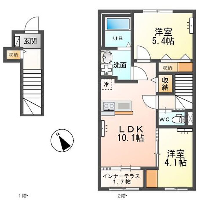 つくば市上横場 アパート 2LDK/2階