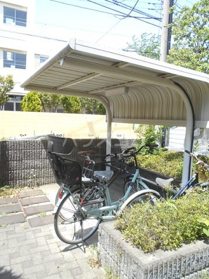訪問者をカメラで確認できるTVインターホン設置済み。敷地内に居住者用の駐輪場がある物件です。